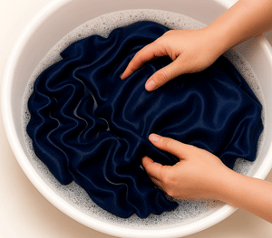 Shiny gowns require delicate handling. You should hand wash these garments only. Fill a basin with cool water and use a mild detergent. Gently agitate the water to clean the fabric, making sure to avoid any harsh scrubbing or wringing, which can damage the glossy finish. Rinse the gown thoroughly with cold water to ensure no soapy residue remains.