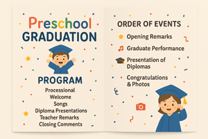 Carry your branding through to the program by utilizing your school logo, specific colors, and chosen fonts. Because families frequently keep programs as souvenirs of a graduation ceremony kindergarten event, investing in quality paper and cohesive design ensures this keepsake represents your school beautifully for years to come.