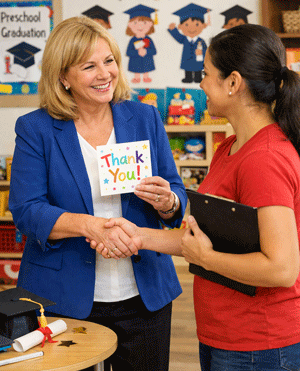 Encourage your staff to share their favorite preschool graduation ideas for teachers from past years. Ask them about student-friendly activities or special classroom traditions that could be incorporated into the broader ceremony. Showing that you actively value their feedback—and actually incorporating their suggestions where possible—boosts staff morale significantly.